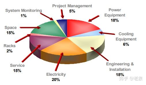 可以看出,电力能耗成本占据所有成本的20%!是数据中心主要的成本。