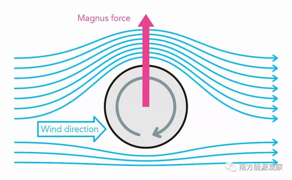 圆柱旋转产生马格努斯效应(指在流体中转动的物体(如圆柱体)受到的力),然后开始整个系统的旋转。通过调整圆柱旋转的速度,涡轮本身的速度可以被控制,这有助于防止在强风中过度旋转而损坏发电机。