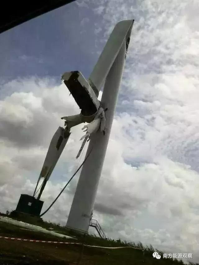 台风涡轮机原型机的试验效率为30%,比传统的螺旋桨式涡轮机低10%。 当然,不同之处在于台风涡轮机实际上是可以在暴风雨中存活下来。而传统的风机,它们的结局大多是这样滴: