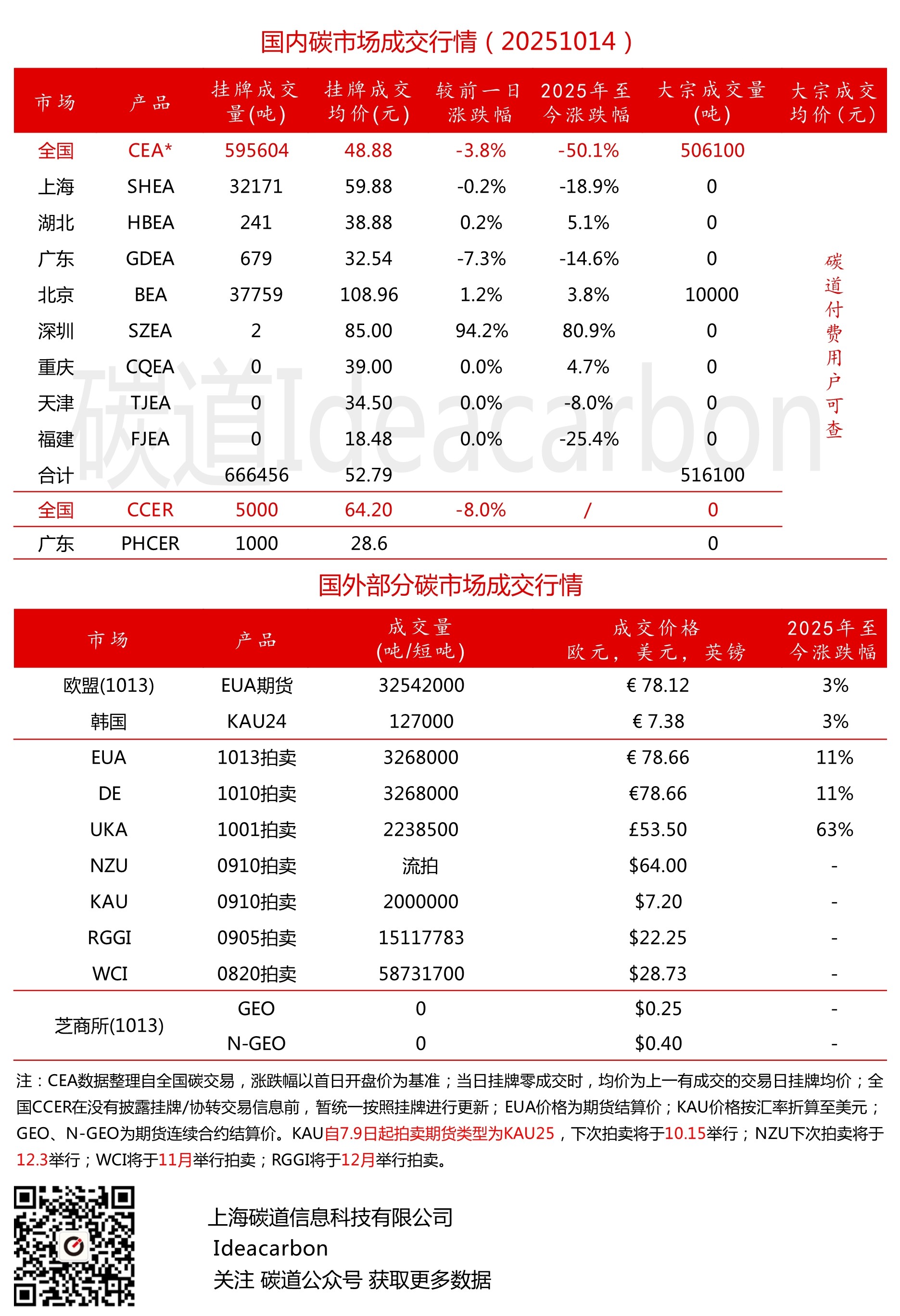 每日碳市场成交行情(20251014)