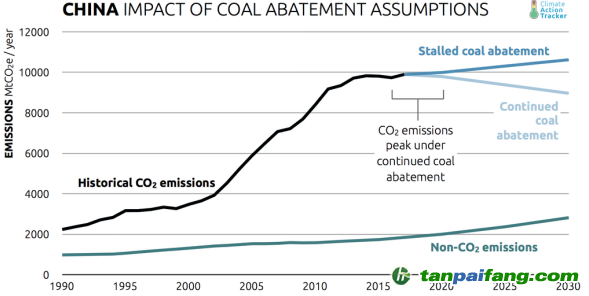 所以在中国达成2030年NDC目标看似并不存在挑战的情况下,CAT对中国NDC的的评级为“高度不足”,认为当前的NDC并不足以将温升限制在《巴黎协定》中规定的2°C以下,更不用说将温升限制在1.5°C,除非其他国家进行更积极的减排;不过这在美国宣布退出《巴黎协定》之后显得更加不现实了,中国作为全球第一温室气体排放大国,是否要承担更多的责任已经是国际气候谈判的焦点之一了。