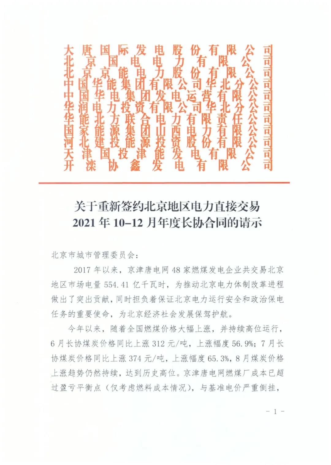 摘要:近日,小编看到网上流传一份文件《关于重新签约北京地区电力直接交易2021年10-12月年度长协合同的请示》,文件的大致内容为:因煤价一直居高不下,导致京津唐电网燃煤厂成本已超过盈亏平衡点(仅考虑燃料成本),与基准电价严重倒挂,燃煤电厂亏损面达到100%,部分企业已出现资金链断裂。为了缓解此现象,各电厂联名呼吁修改2021年10-12月年度长协合同。
