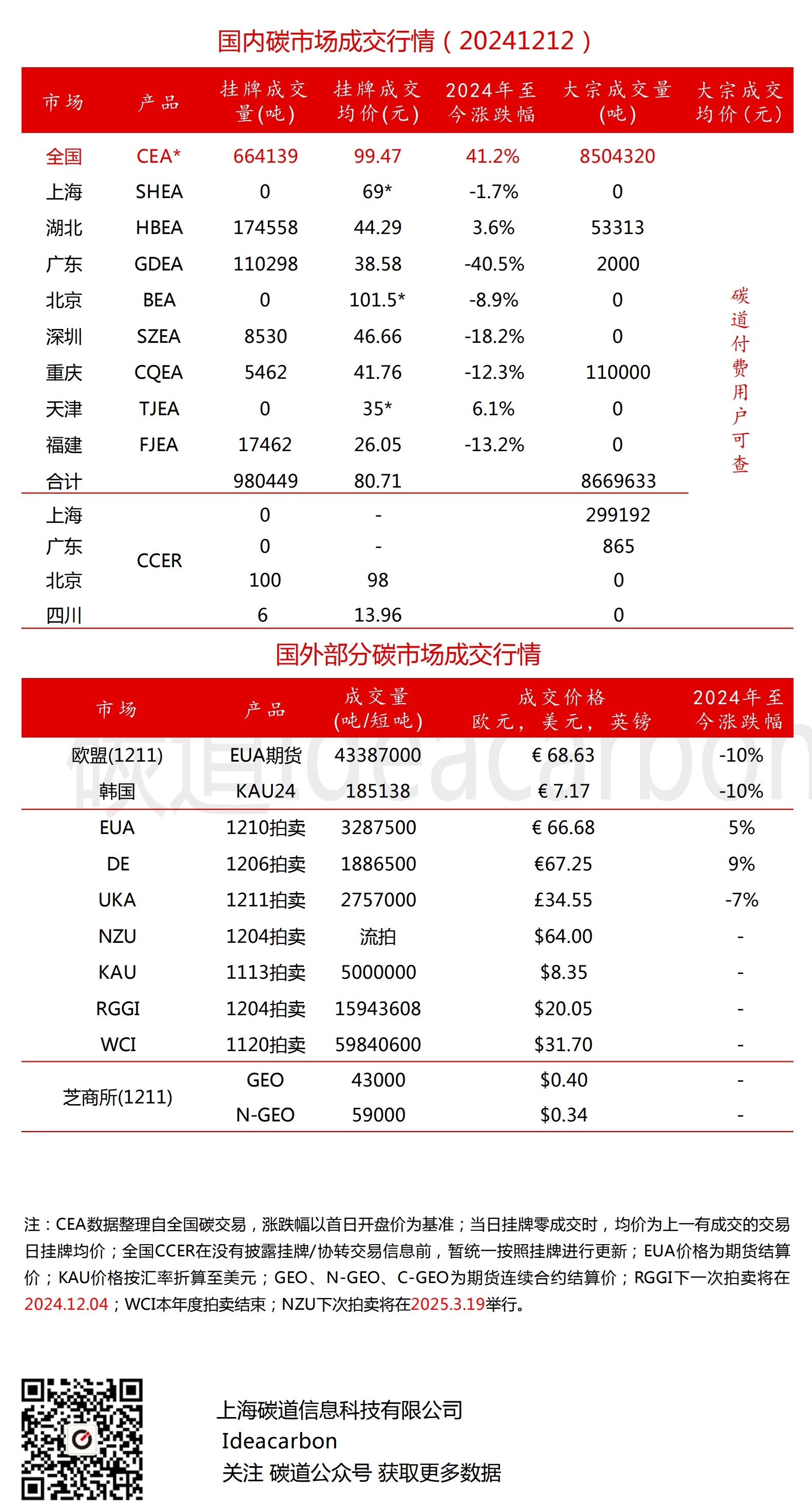 每日碳市场成交行情(20241212)