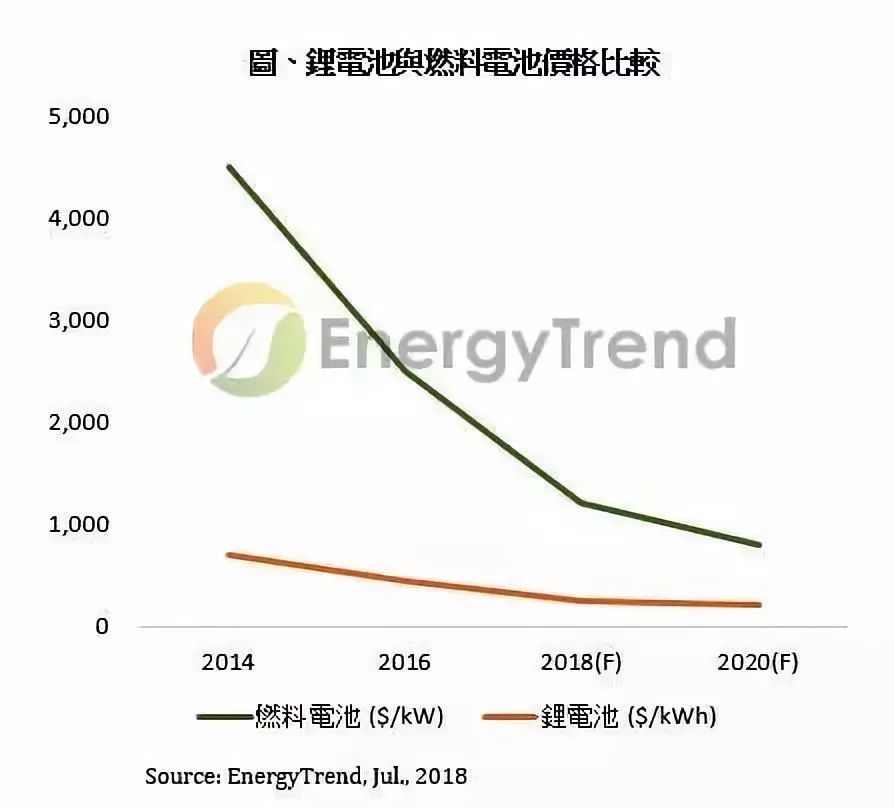 根据EnergyTrend调查,目前每辆电动乘用车中,锂电池的平均价格约为1万5,000美元,2020年预计将降至1万美元以下;而目前燃料电池成本约在2万美元,显示两者的价格仍有一大段差距。