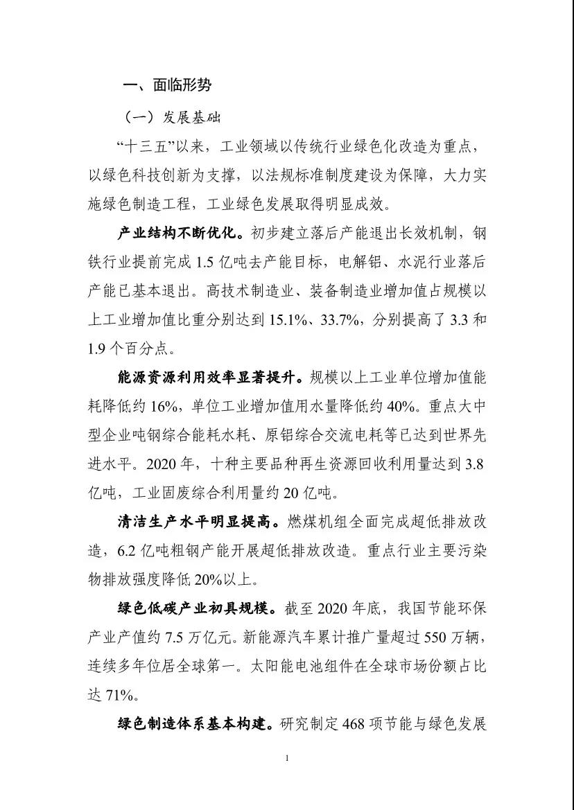 工业和信息化部关于印发《“十四五”工业绿色发展规划》的通知