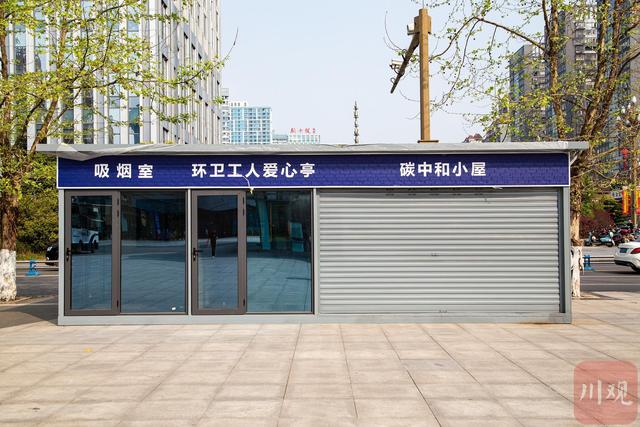 在内江东兴区万达广场1号门、2号门外,两座灰色的“碳中和”小屋吸引着路过的市民朋友。“一共20余平方米,麻雀虽小但五脏俱全。”内江东兴区综合行政执法局相关负责人介绍,内江首批“碳中和”小屋分为生活垃圾分类投放站、公共吸烟室、环卫工人休息室三大功能区,方便广大市民及环卫工人分类投放生活垃圾和休息。