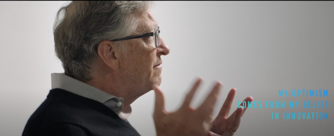 “我的乐观来源于我相信创新”。图片来源于Breakthrough Energy视频截屏