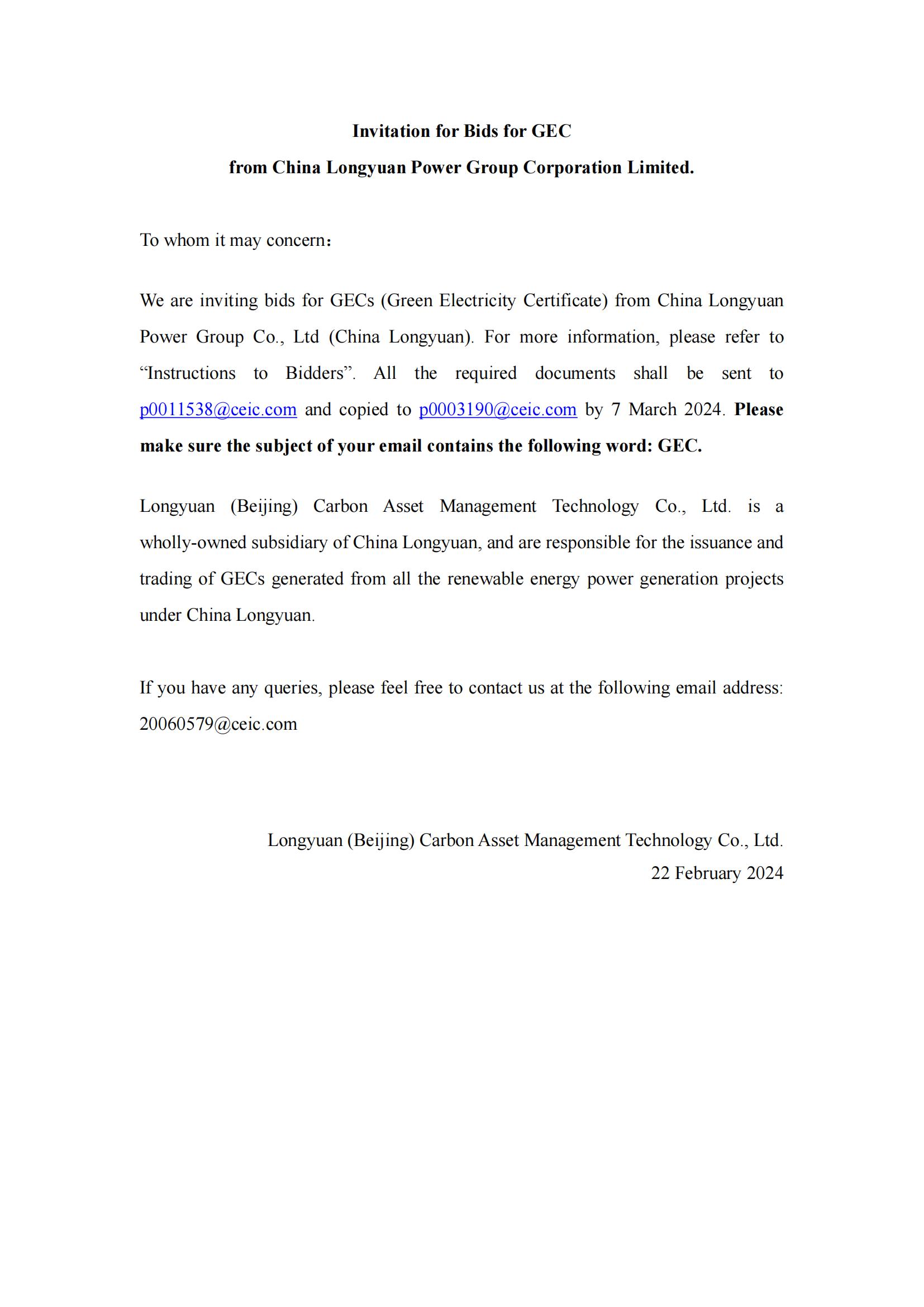 国家能源集团龙源电力集团股份有限公司 可再生能源绿色电力证书出售询价