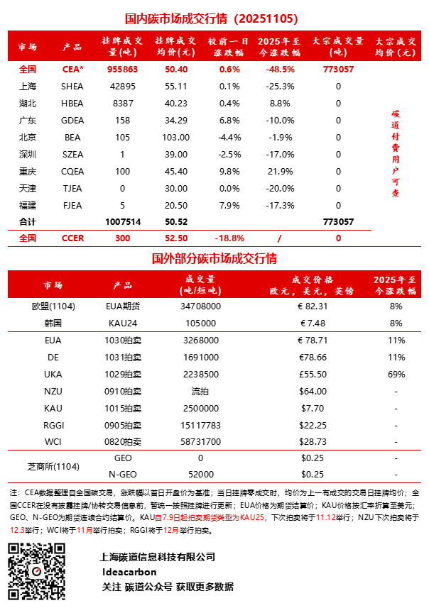 摘要:全国碳配额CEA发生773057吨大宗协议转让,成交均较市场价低3.57%