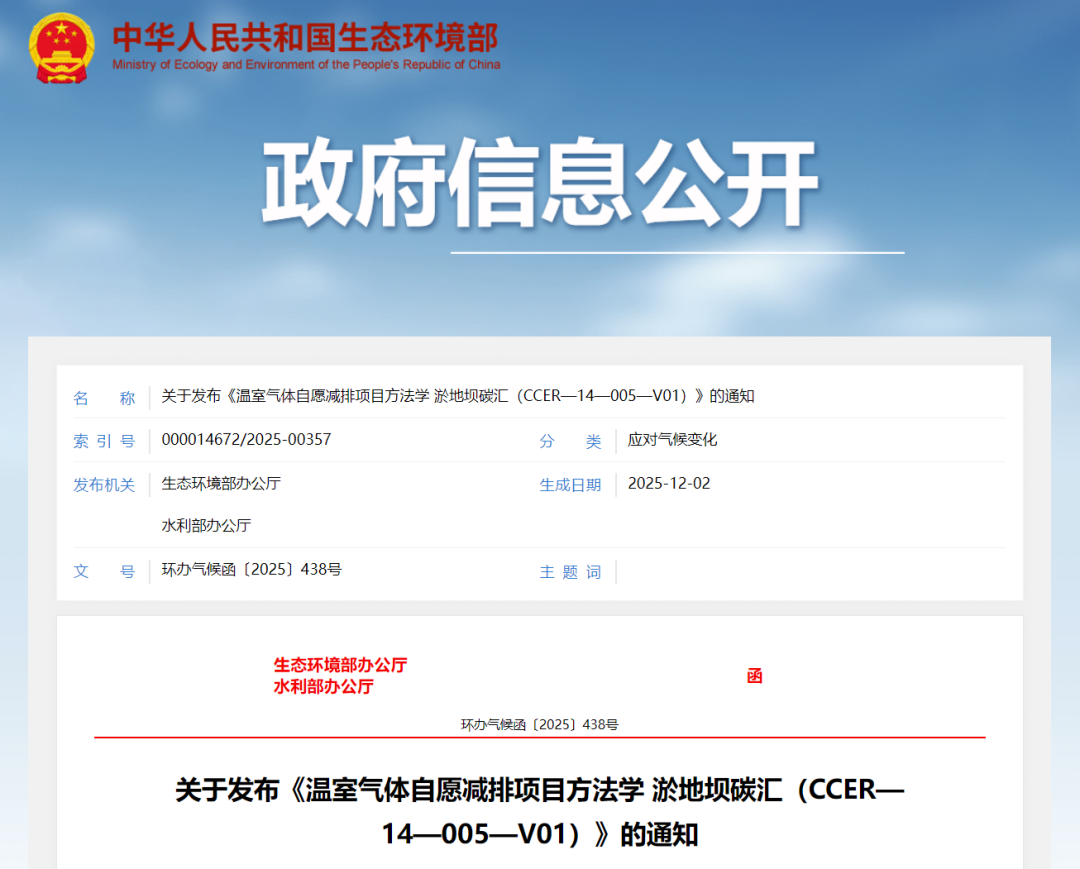 关于发布《温室气体自愿减排项目方法学 淤地坝碳汇(CCER—14—005—V01)》的通知