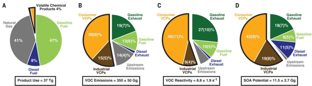 看到有机物对颗粒物长大的重要促进作用,小编也联想到今年上半年Science发表的另一篇文章,Brian C. McDonald等人发表在Science 的研究结果(Science, 2018, 359, 760-764, DOI: 10.1126/science.aaq0524),他们以洛杉矶为研究对象,阐明了香水、化妆品和日常洗涤剂之类家庭日用品的挥发性化学产品也是城市雾霾形成的重要污染来源。