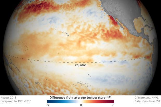 根据数据显示,通过对厄尔尼诺观察,在位于热带太平洋的温度区域,风和云量在2018年8月大部分是中性的,但它们提供了暗示,支持在2018年秋季晚些时候(50-55%概率)或冬季(65-70%概率)过渡到厄尔尼诺现象的模型预测。在海洋表面下方,一股温暖的海水向东扩散,受到的信风时期推动。所以说我们可能能够准确的推测出厄尔尼诺现象的来临。