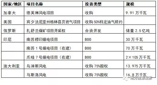 2017年,中国国电集团公司与神华集团有限责任公司合并重组为国家能源投资集团有限责任公司。国电集团在境外拥有多处风电资产和待开发风电项目。神华集团海外资产则涉及煤电、页岩气和新能源发电等多个方面。2017年11月,合并后的国家能源投资集团还与美国西弗吉尼亚州签署投资总额达837亿美元的谅解备忘录,投资领域包括西弗吉尼亚州的页岩气、电力和化工项目。