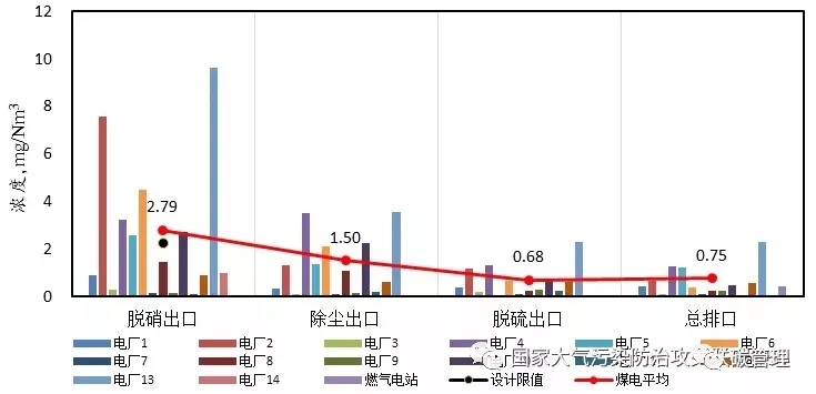 测试结果发现,燃煤电厂烟气中NH3的平均排放浓度为0.75mg/Nm3, 远远低于排放标准3ppm(2.28mg/m3)