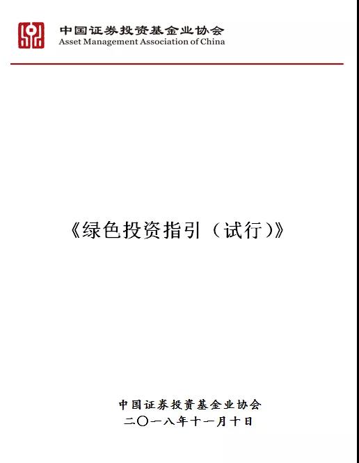 中国证券投资基金业协会发布《绿色投资指引(试行)》
