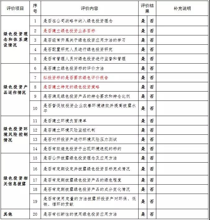 基金管理人绿色投资自评表