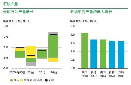 全球产量增加220万桶/日,超历史平均水平的两倍。增长主要是由美国驱动,其220万桶/日的增长是单一国家石油产量年度增长的历史最高水平。自2012年致密油革命开始,美国的产量(包括天然气凝液)已经增加超过700万桶/日,大致相当于沙特阿拉伯的原油出口量。
