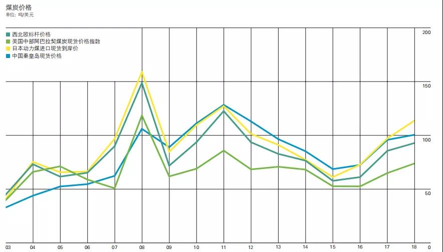 发电用煤仍是煤炭消费增长的主要原因。可再生能源增长迅猛,中国和印度在2018年都实现了25%以上的可再生能源增长,占世界总增长的大约一半。但是这还是无法跟上发电需求的增长步伐。因此,发电需求的增长仍需要更多的煤炭来满足。
