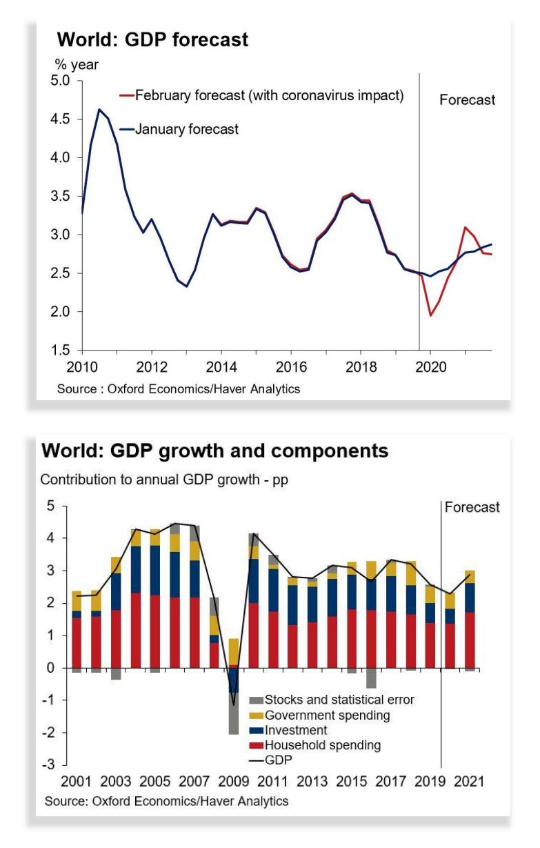 摘要:2020 年,全球 GDP 将比研究院此前的基准降低 0.4 万亿美元(-0.5%),但 2020 年下半年开始,随着疫情消退,企业和家庭弥补了此前的亏损,经济增长将加速,到 2021 年底,全球 GDP 将接近基准水平。