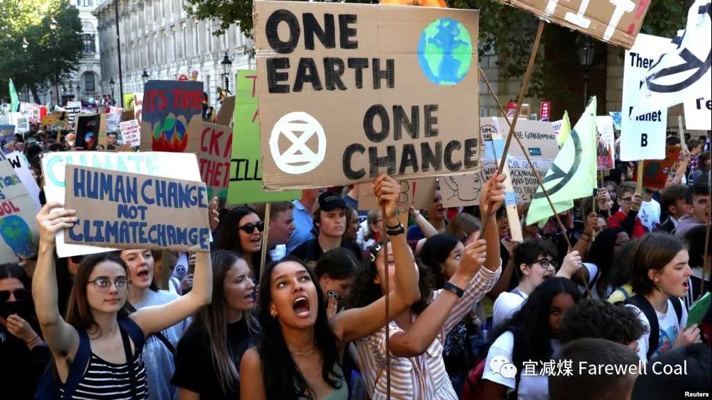 图片说明:2019年9月20日英国伦敦举行反气候变化游行。来源:美国之音