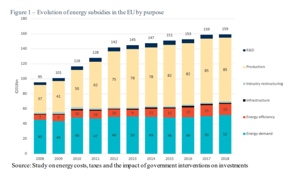 欧盟委员会本月公布的一份报告显示,2018年欧盟国家在能源补贴上花费了1590亿欧元(约合1880亿美元)。其中近三分之一用于化石能源。欧盟27个国家的化石能源补贴在2015-2018年期间增加了6%,包括政府和公共机构对煤炭、天然气和石油的支持,形式包括赠款、贷款、税收优惠或价格支持。新冠病毒大流行的经济后果可能会导致各国提供额外的能源补贴,包括对化石能源的补贴,尽管目前还没有完整的数据。