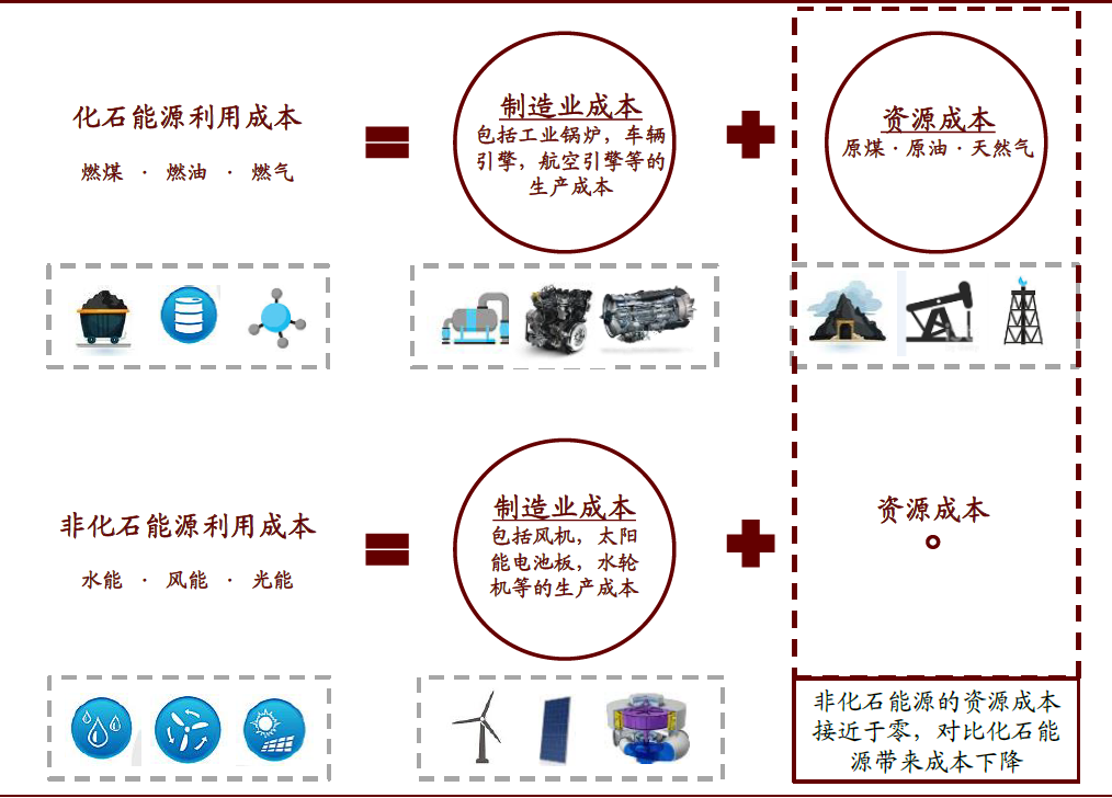 图表: 非化石能源成本优势来自零资源成本和制造业属性