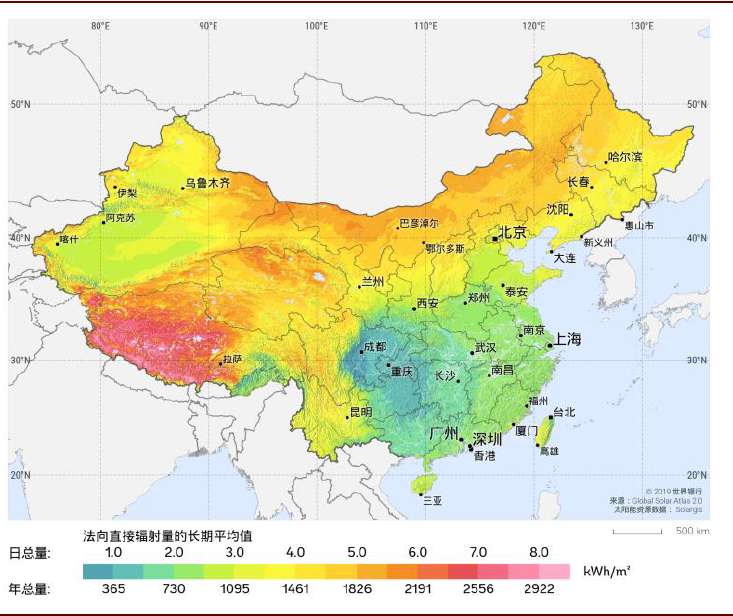 ►降低能源的区域依赖,资源分布更加均匀。由于我国国土大部分位于中纬度地区,整体光照辐射资源分布相对均匀,中东部地区多数具备900-1,100小时的有效光伏利用小时能力。不同于此前煤炭、石油、天然气资源在西部、北部地区的富集,我们认为光伏发电的分布式开发能力,将打破此前能源富集区域与负荷中心的错配,实现能源生产与能源消费的一体化,减低运输成本与损耗,并提升系统灵活性。