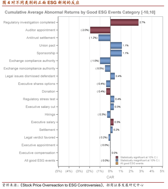 ●心理学研究表明负面现象更容易引起关注,故股价会对负面的ESG新闻反应过度也是情理之中。这一结论有利于我们在负面ESG新闻公告后挖掘投资机会,因为股价的反应过度之后会发生均值回复,ESG逆势交易者或许可以从中获益。后续我们也将会尝试在A股市场进行相关的实证研究,请大家继续关注我们后续的深度研究。