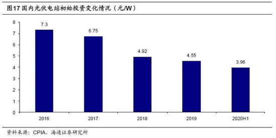 我们认为平价上网的实现,主要得益于成本端的持续下降,根据CPIA数据,2020年上半年国内光伏电站的建设成本已经下降至4元/W以下。