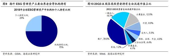 ESG投资理念在A股市场逐渐得到重视。ESG即环境(Environmental)、社会责任(Social Responsibility)和公司治理(Corporate Governance),ESG投资策略就是将三个因素纳入投资决策的投资方法。近年来ESG投资在A股市场逐渐得到重视:(1)自上而下政策推动。2017年中国加入UN-PRI之后,监管陆续推出多项政策积极推广ESG投资,例如2018年修订《上市公司治理准则》,确立了ESG信息披露基本框架,2019年设立科创板并要求上市公司披露ESG信息。未来我国将逐步强制披露ESG有关信息,从制度上保障ESG投资的开展;(2)自下而上投资需求。海外ESG管理资产分为个人持有部分和机构持有部分,其中机构部分主要由养老金、高校基金、保险公司和各类组织投资。2018年海外ESG管理资产中机构持有75%,占绝对主导地位。近年来,A股内外资机构投资者占比持续上升,截至20Q3外资持有A股市值占比为8.9%,国内公募基金占比为12.5%,险资、社保和年金占比为4.6%。参考海外经验,这些长线资金有望带来更多ESG策略的需求。在《行稳致远——ESG策略的奥义-202010121》中,我们提到ESG策略在新兴市场存在超额收益,2009年2月至2020年12月MSCI新兴市场ESG指数累计收益为367.9%,明显跑赢MSCI新兴市场综合指数的258.6%。