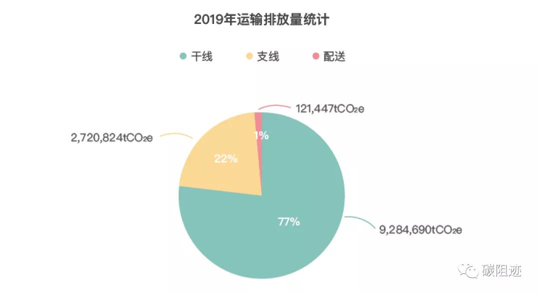 在公路运输中,干线,支线和配送的排放占比分别为77%,22%和1%。