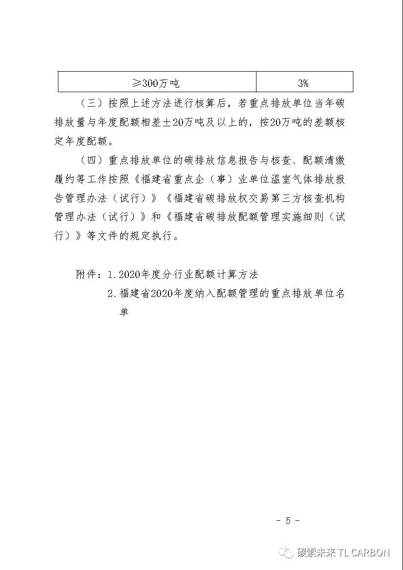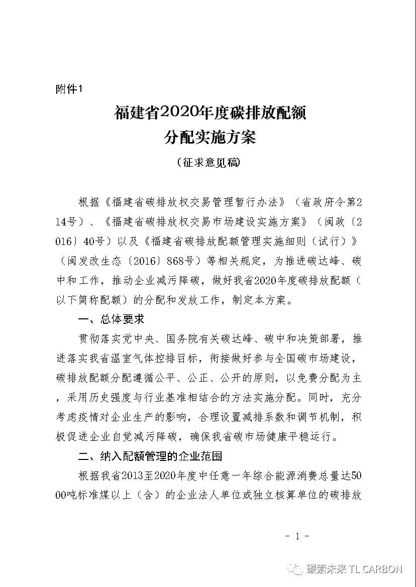 附件:1.《福建省2020年度碳排放配额分配实施方案(征求意见稿)》