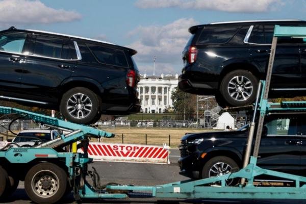 2021年11月23日,在美国首都华盛顿,一辆货车从白宫附近驶过。(新华社发,沈霆摄)