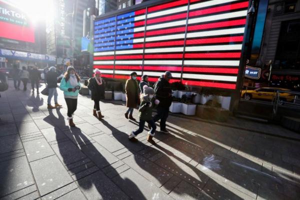 2021年11月23日,行人走在美国纽约时报广场。(新华社记者王迎摄)