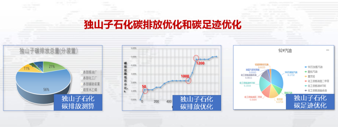 今年5月份以来,作为试点单位,独山子石化公司与中国石油规划总院及石油化工研究院开展碳排放及碳足迹关键技术研究合作,进一步完善公司及直属单位碳排放模型。公司持续对接装置碳排放核算、产品碳足迹核算、装置碳排放优化方法等,建立并完善炼化精细化碳排放核算模型、炼化产品碳足迹核算模型以及碳排放优化模型等,将公司的生产经营优化与碳减排结合,推进公司的碳排放管理逐渐精细化、准确化和定量化。