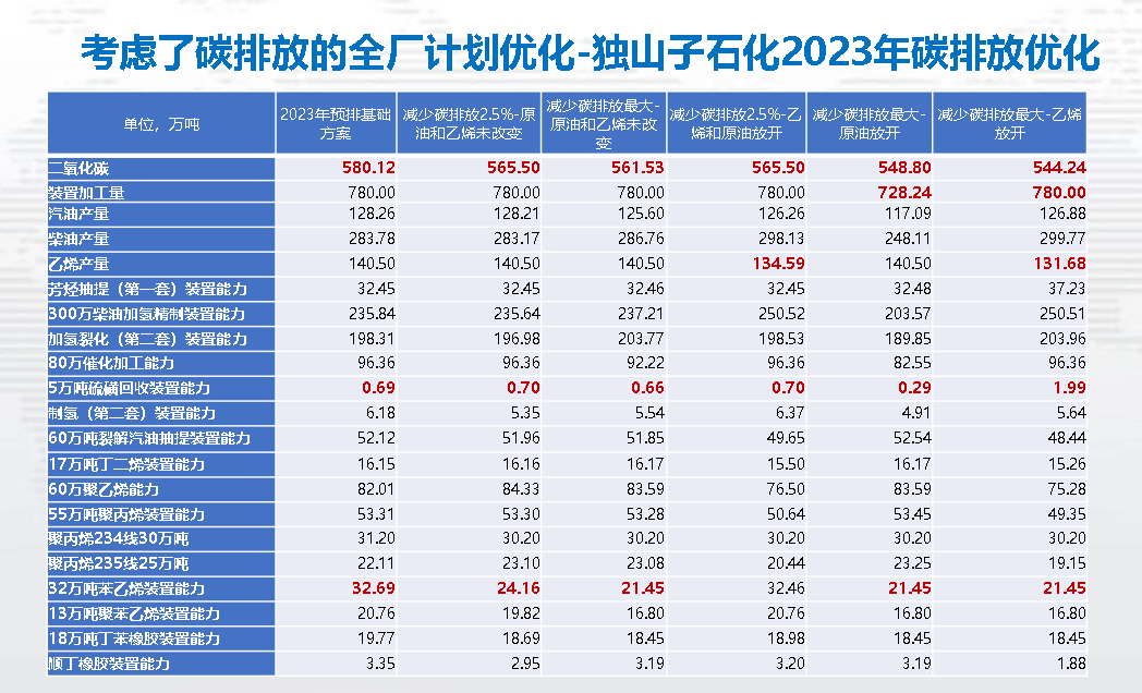 该项目基于炼化计划优化模型建立了不同装置、不同加工方案的碳排放模型,可通过控制产品碳排放指标实现碳排放优化与生产计划优化相结合,实现基于碳排放总量、碳排放强度、碳足迹及碳汇价格等多维度的排产优化。