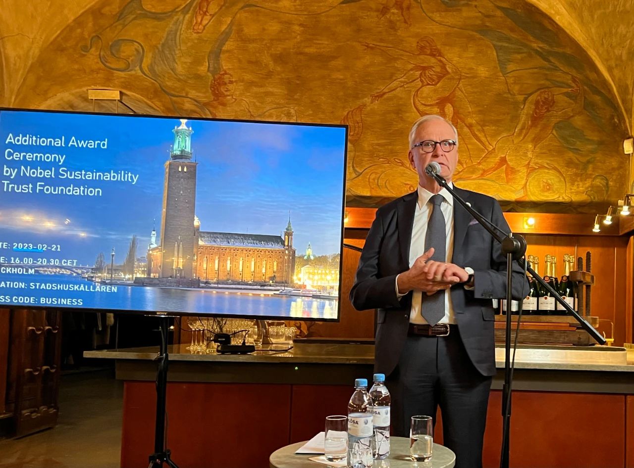 2023年2月21日,驻瑞典大使崔爱民出席诺贝尔可持续发展基金会颁奖仪式,代表中国气候变化事务特使解振华领取“可持续发展特别贡献奖”并在颁奖仪式上致辞。科技参赞丁明勤、商务参赞韩晓东等参加活动。