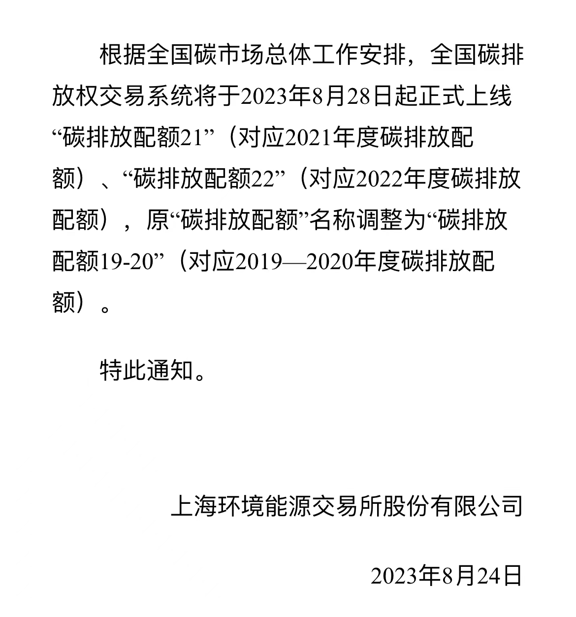 关于上线“碳排放配额21”“碳排放配额22”的通知