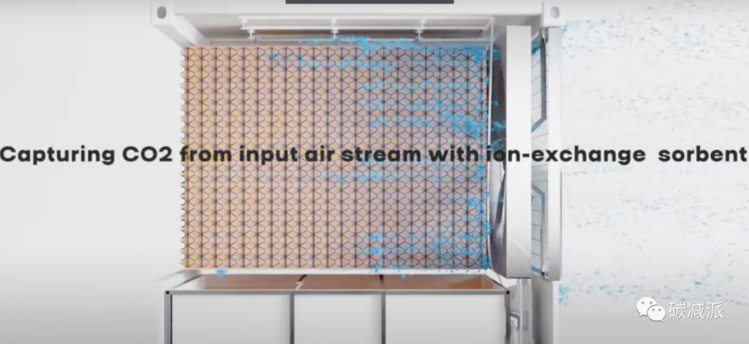 1. 通过大型吸气装置从空气中直接利用离子交换吸附剂吸收二氧化碳。