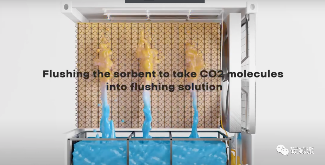 2. 冲洗吸附剂以将吸收的二氧化碳分子进入冲洗溶液中。