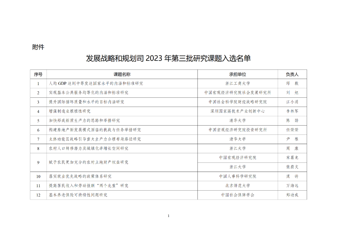 11月13日,国家发改委公布发展战略和规划司2023年第三批研究课题入选名单。