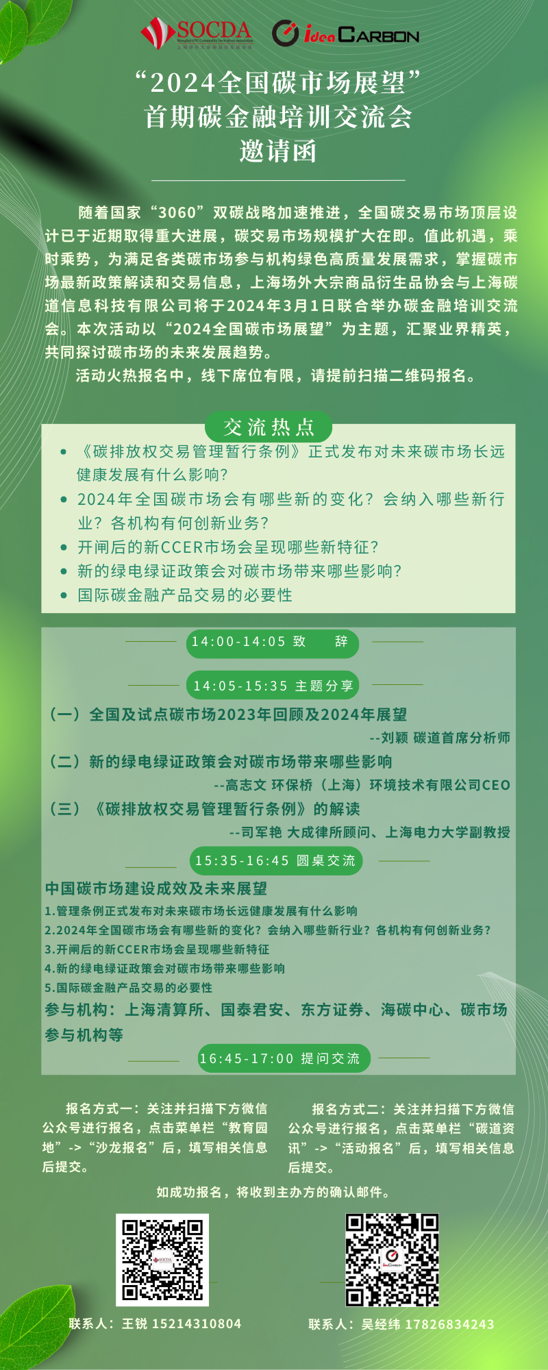 【碳道】“2024全国碳市场展望”首期碳金融培训交流会邀请函