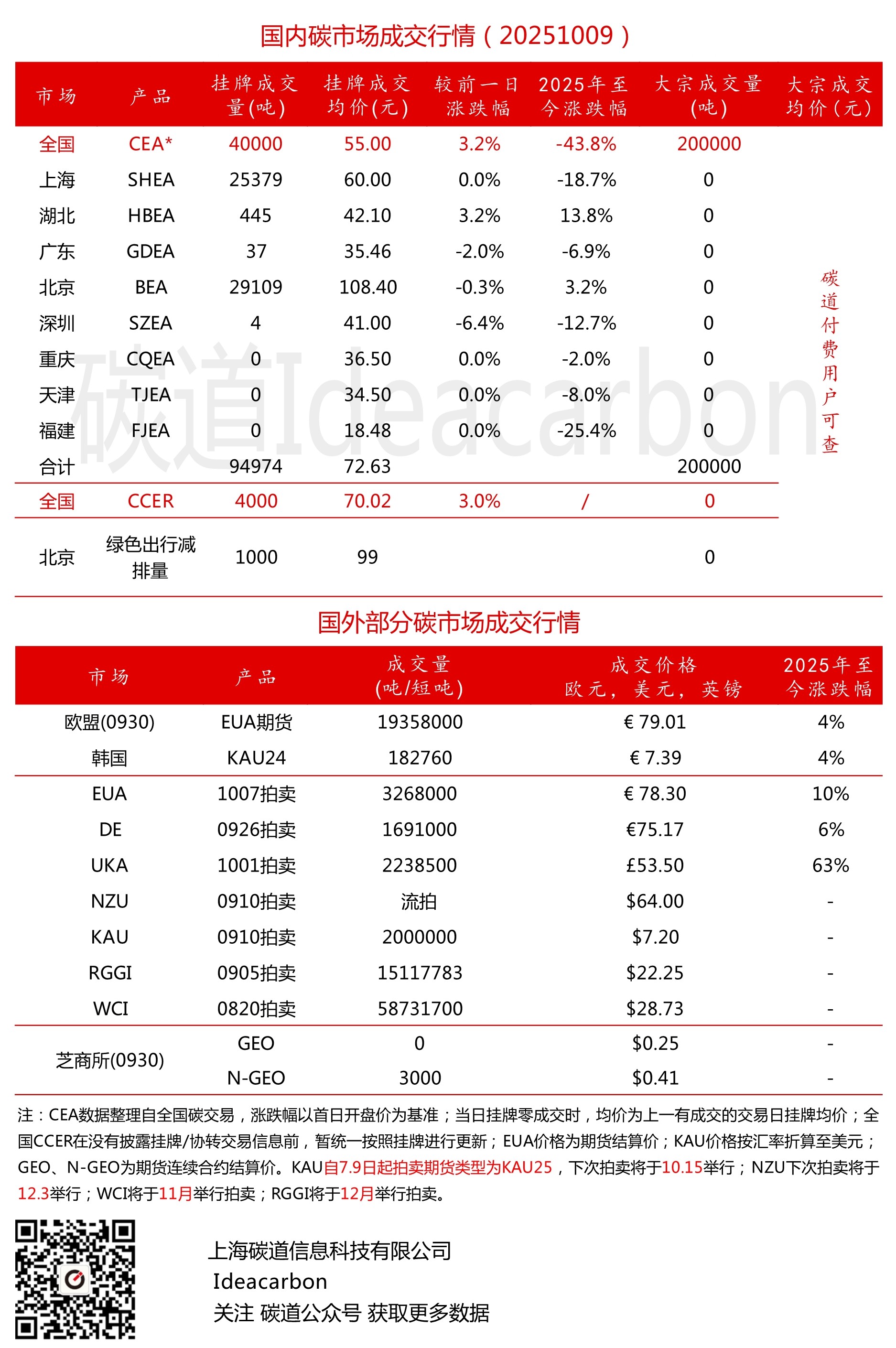 每日碳市场成交行情(20251009)