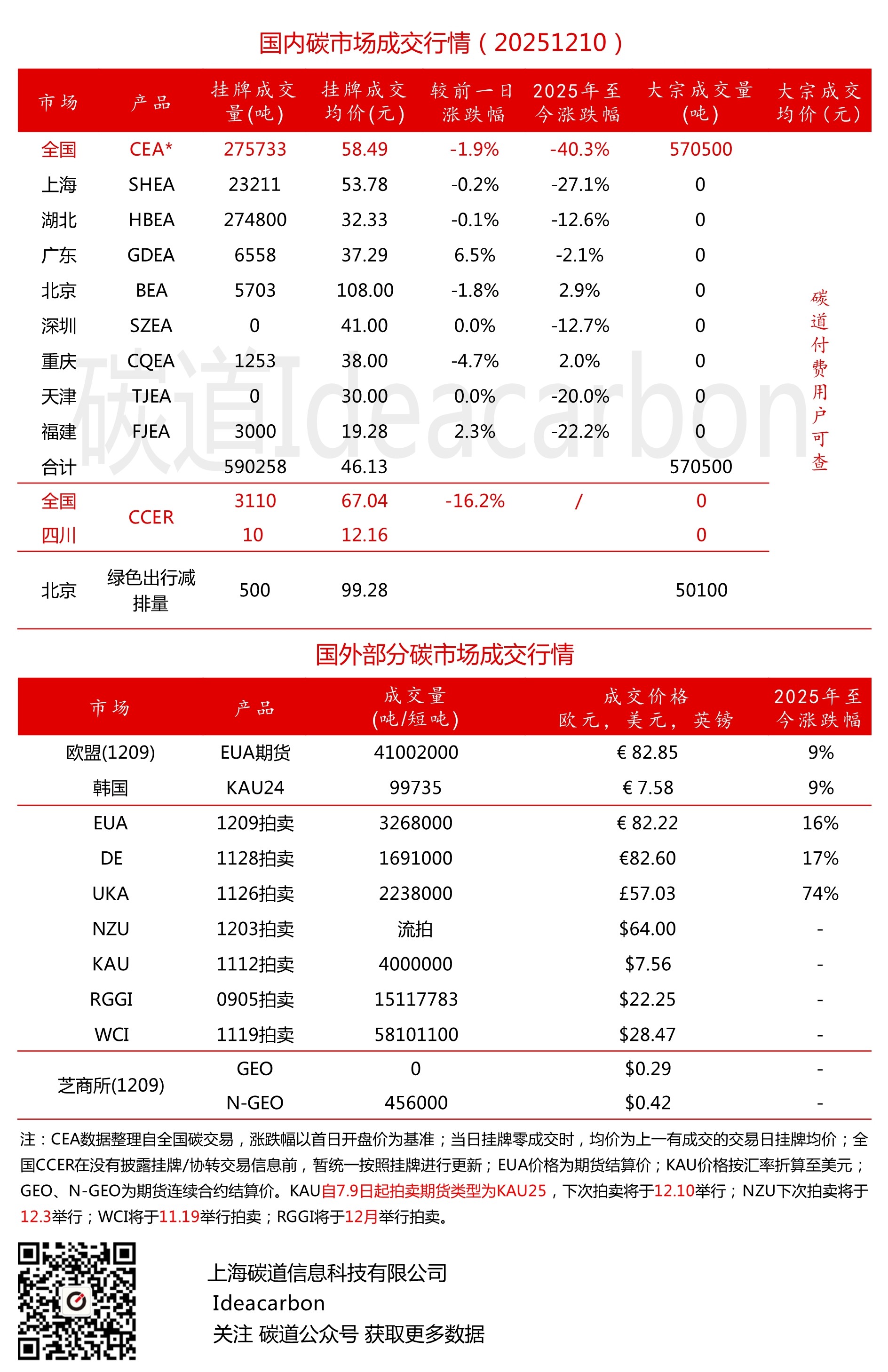 每日碳市场成交行情(20251210)