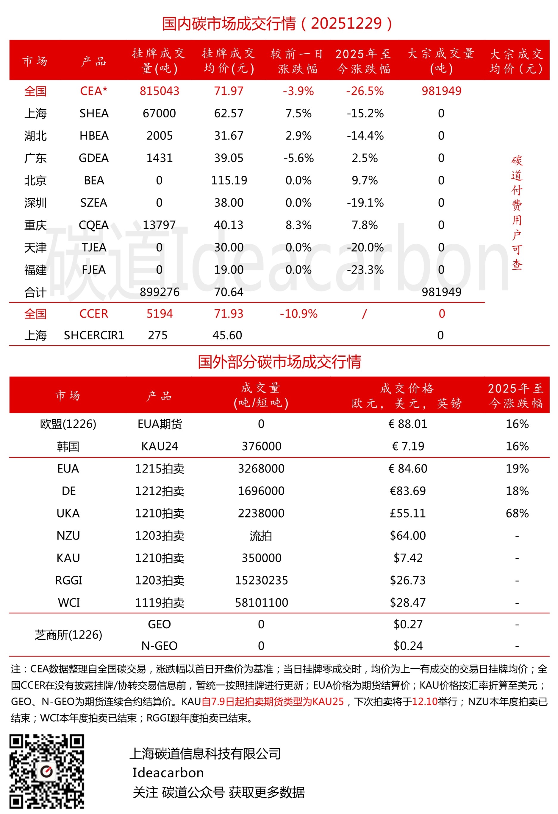 每日碳市场成交行情(20251225)
