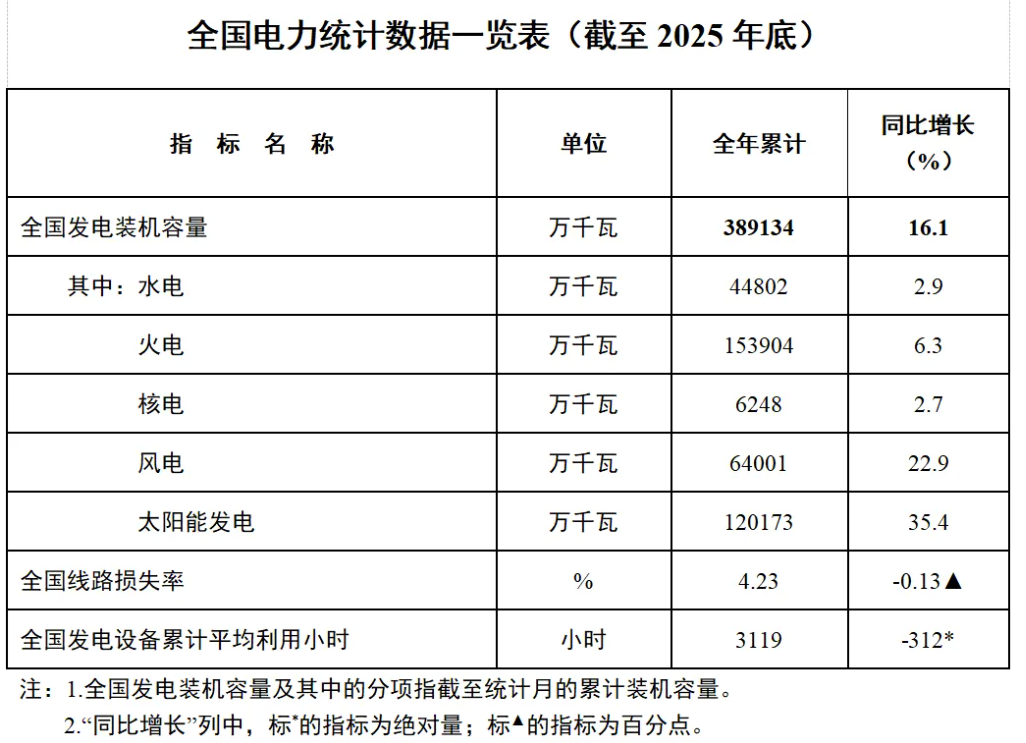 国家能源局发布2025年全国电力统计数据