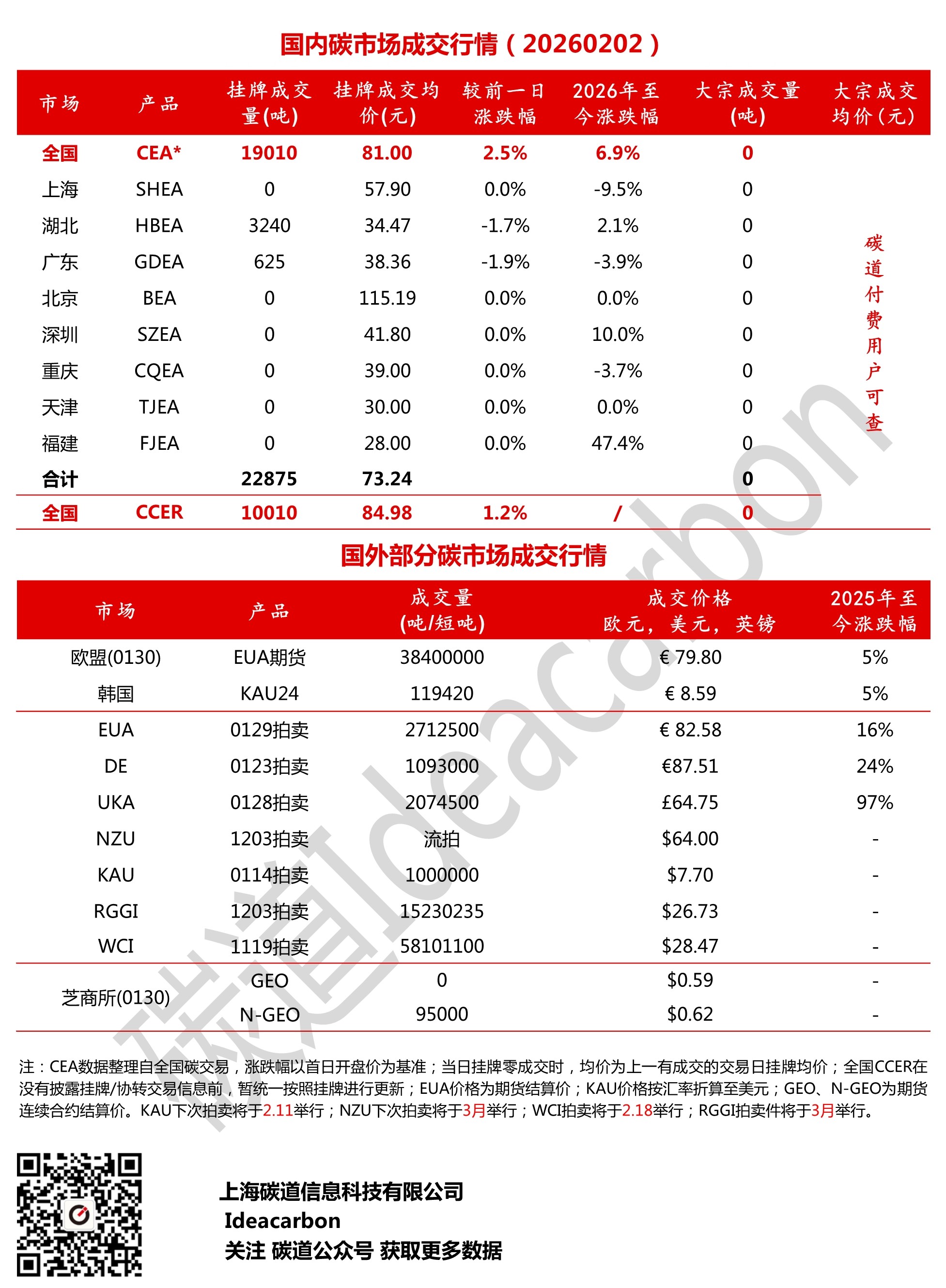每日碳市场成交行情(20260202)