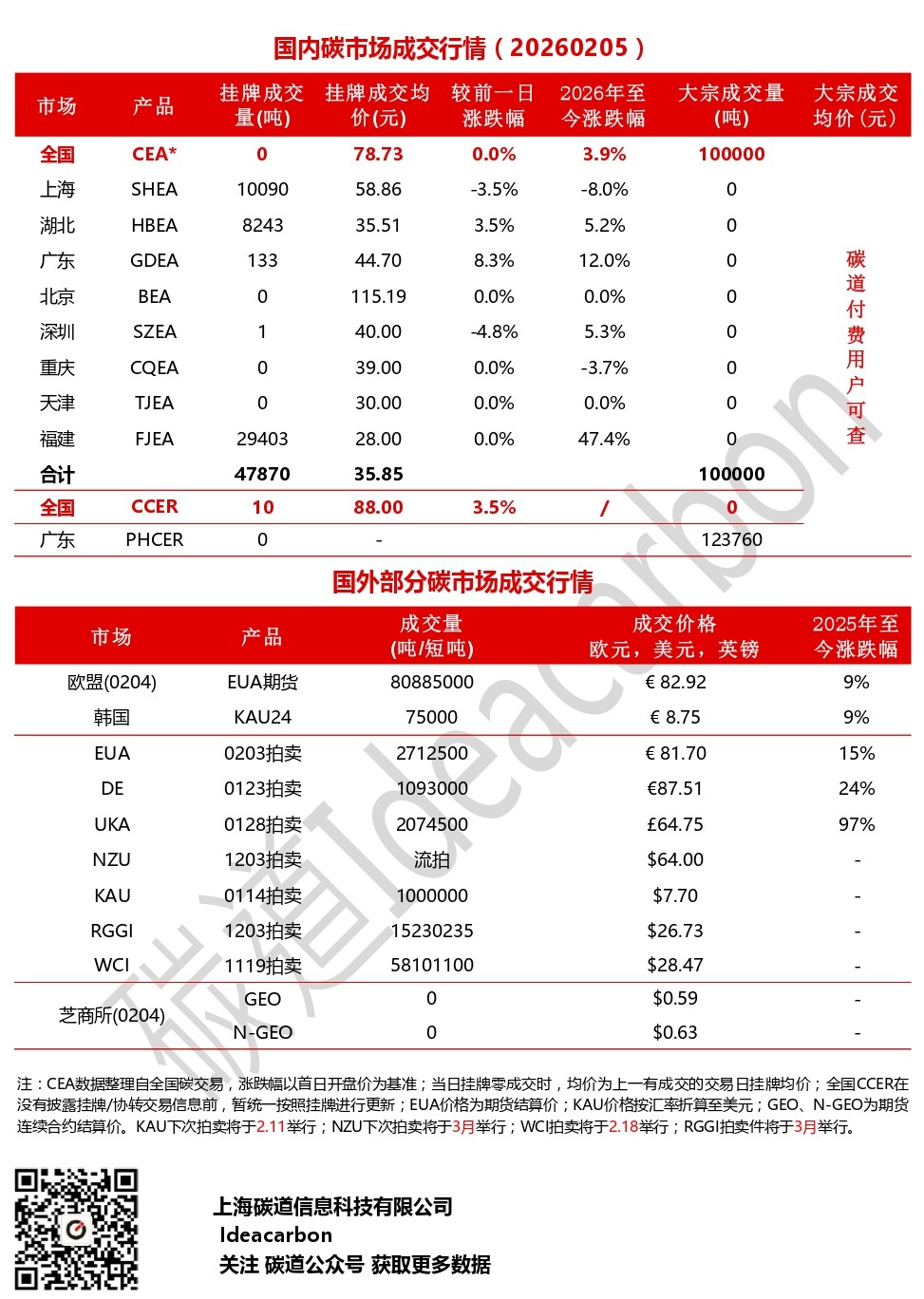 每日碳市场成交行情(20260205)